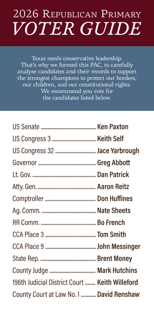 The Hunt County Young Republicans is your local arm of the Young Republicans of Texas — the official youth wing of the Republican Party of Texas. We are passionate about keeping Hunt County and Texas red by electing Godly, conservative, Republican candidates who will preserve and defend our liberties, which we affirm are granted by God and must be respected by our elected leaders.